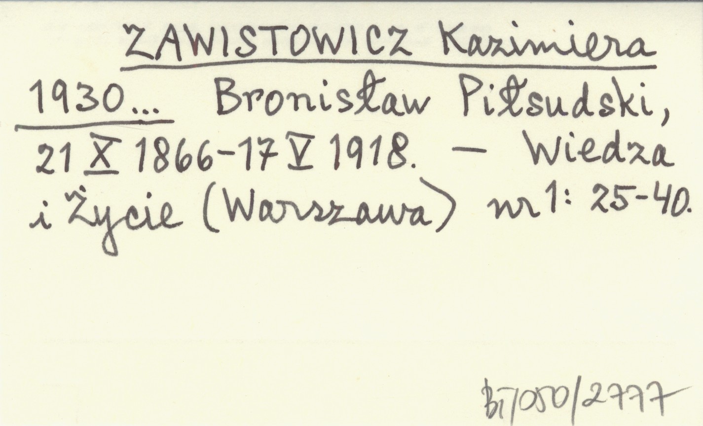 ZAWISTOWICZ Kazimiera 1930... Bronisław Piłsudski, 21 X 1866-17 V 1918.