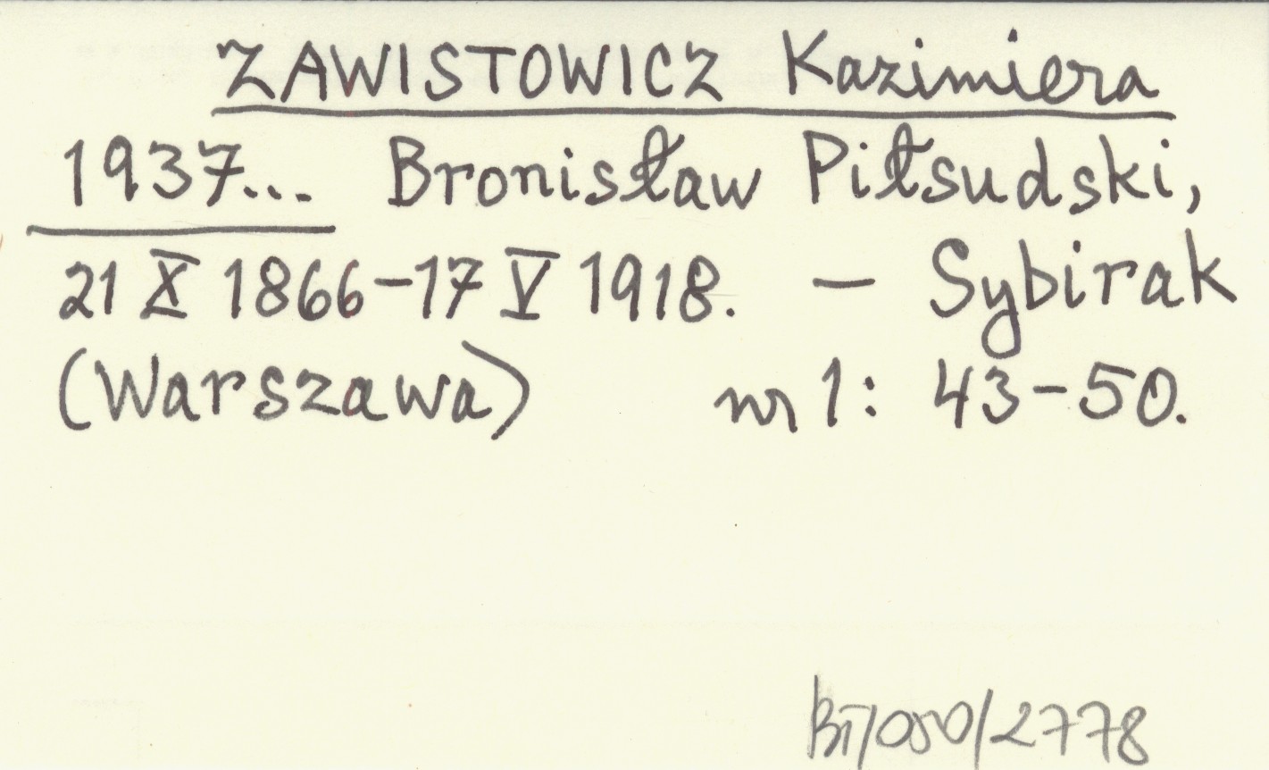 ZAWISTOWICZ Kazimiera 1937... Bronisław Piłsudski, 21 X 1866-17 V 1918.