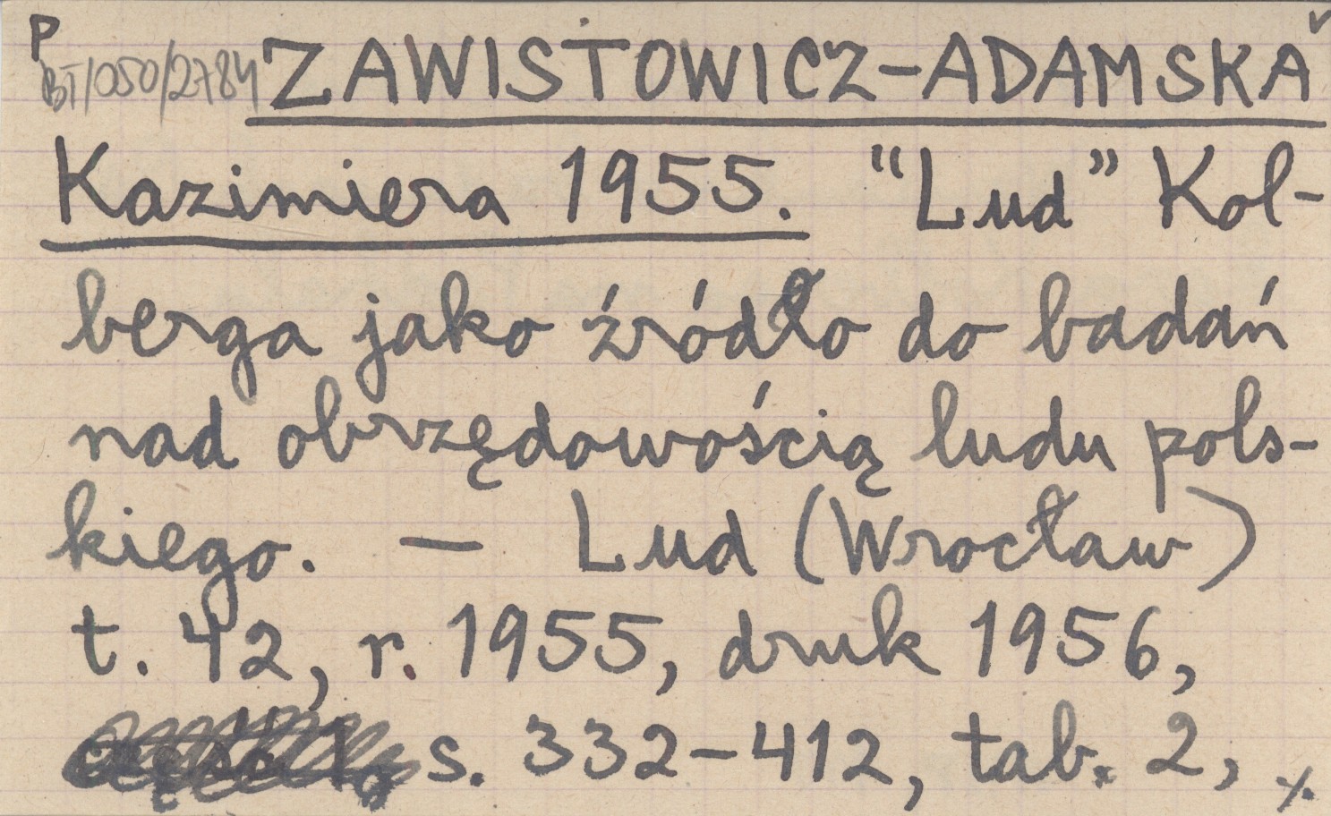 ZAWISTOWICZ-ADAMSKA Kazimiera 1955 "Lud" Kolberga jako źródło do badań nad obrzędowością ludu polskiego.