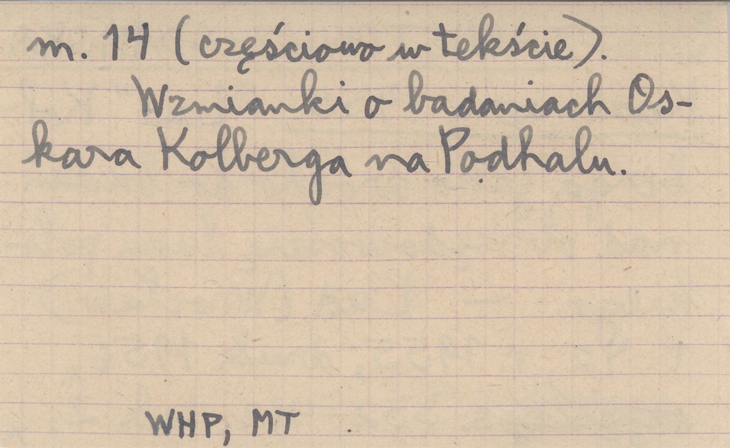 Lud (Wrocław) , T. 42 (1955, druk 1956): 332-412, 2 k., 14 map (częściowo w tekście). Wzmianki o badaniach Oskara Kolberga na Podhalu.