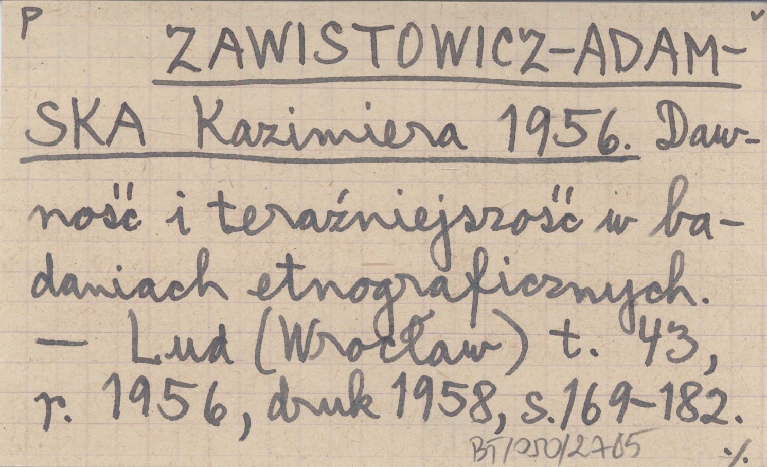 ZAWISTOWICZ-ADAMSKA Kazimiera 1956 Dawność i teraźniejszość w badaniach etnograficznych.