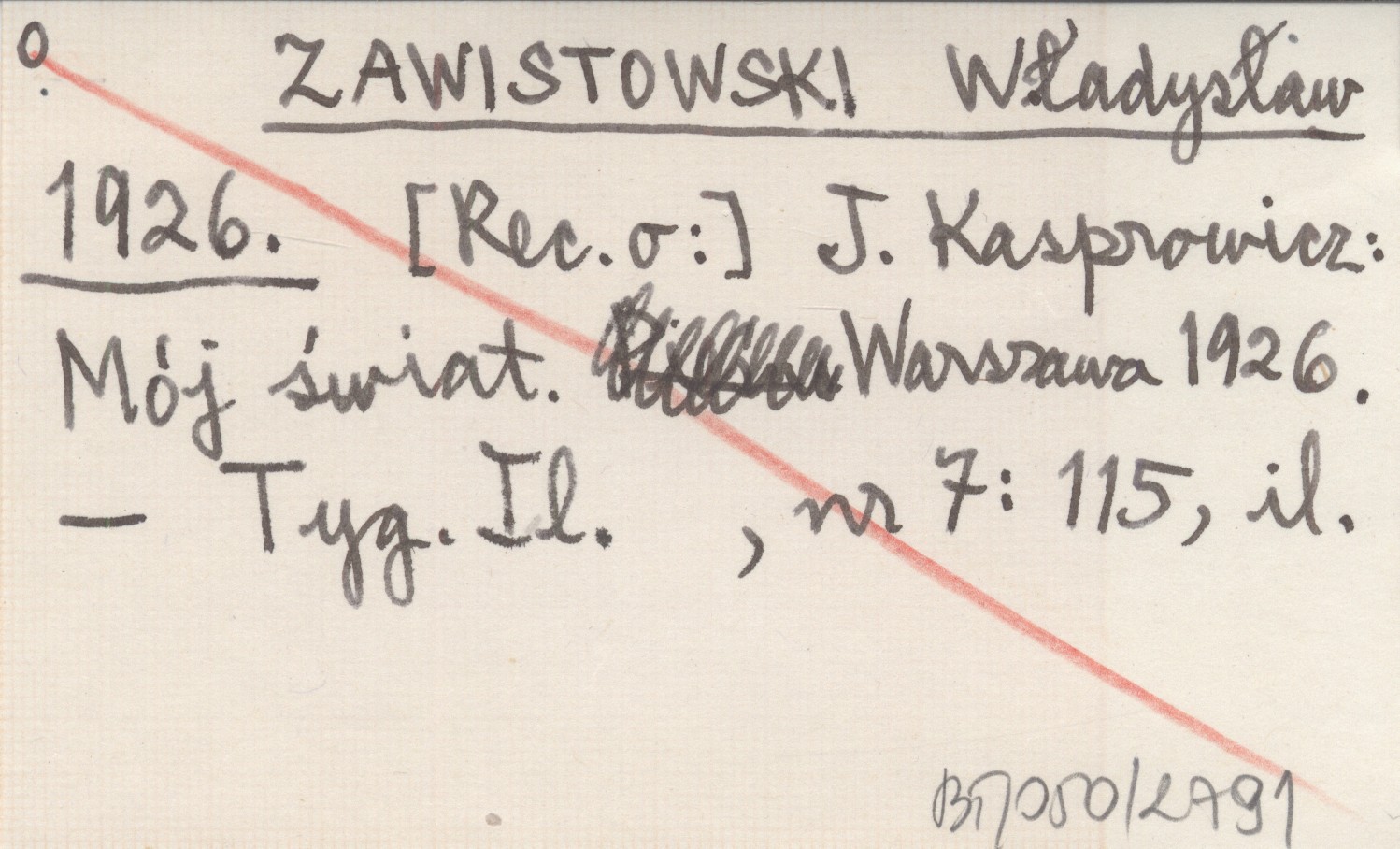 ZAWISTOWSKI Władysław 1926 [Rec. o:] J. Kasprowicz: Mój świat. Warszawa 1926.
