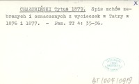 CHAŁUBIŃSKI Tytus 1879 Spis mchów zebranych i oznaczonych z wycieczek w Tatry w 1876 i 1877.