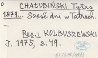 CHAŁUBIŃSKI Tytus 1879 b Sześć dni w Tatrach. Wycieczka bez programu.
