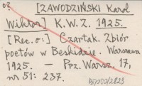 K. W. Z. [ZAWODZIŃSKI Karol Wiktor] 1925 [Rec. o:] Czartak. Zbiór poetów w Beskidzie. Warszawa 1925.