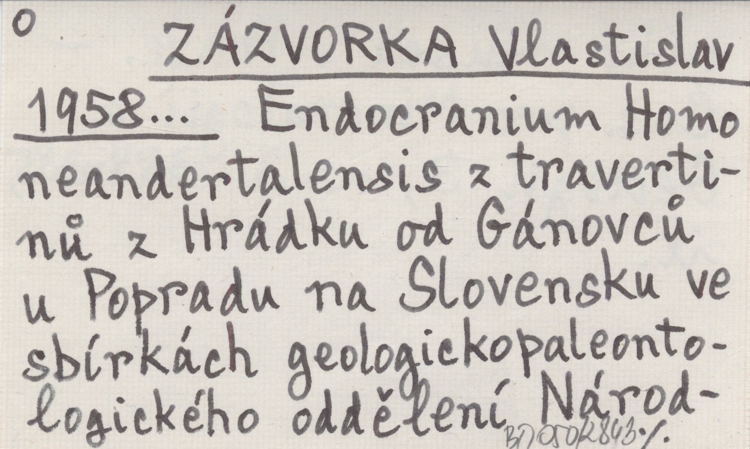 ZÁZVORKA Vlastislav 1958... Endocranium Homo neandertalensis z travertinů z Hrádku od Gánovců u Popradu na Slovensku ve sbírkách geologickopaleontologického oddělení Národního musea v Praze.