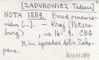 NOTA [ZADUROWICZ Tadeusz] 1889 Przed omawianiem [...].