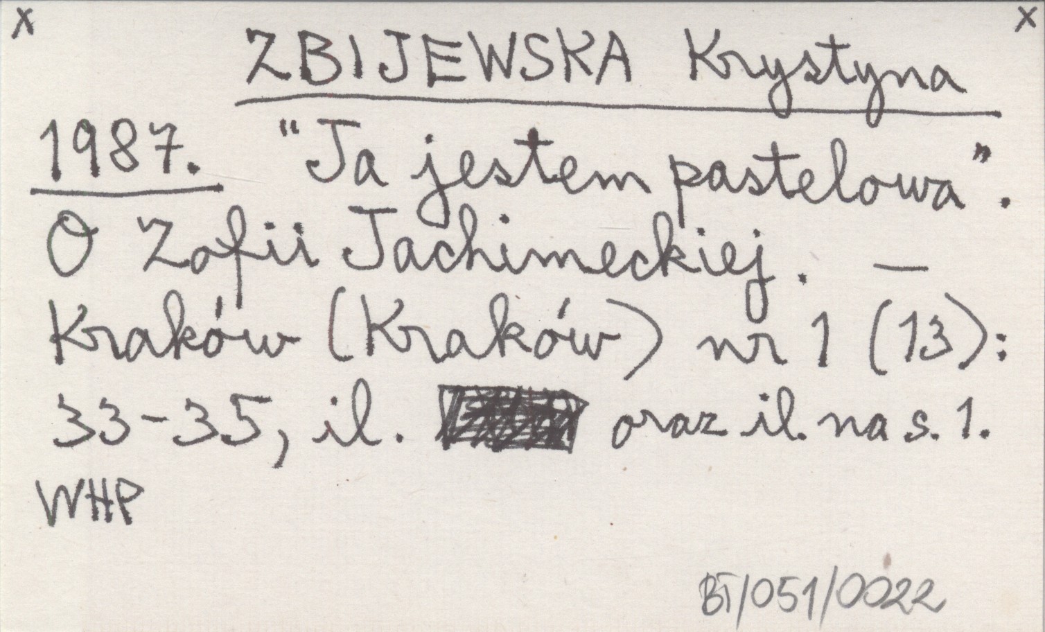 ZBIJEWSKA Krystyna 1987 "Ja jestem pastelowa". O Zofii Jachimeckiej.