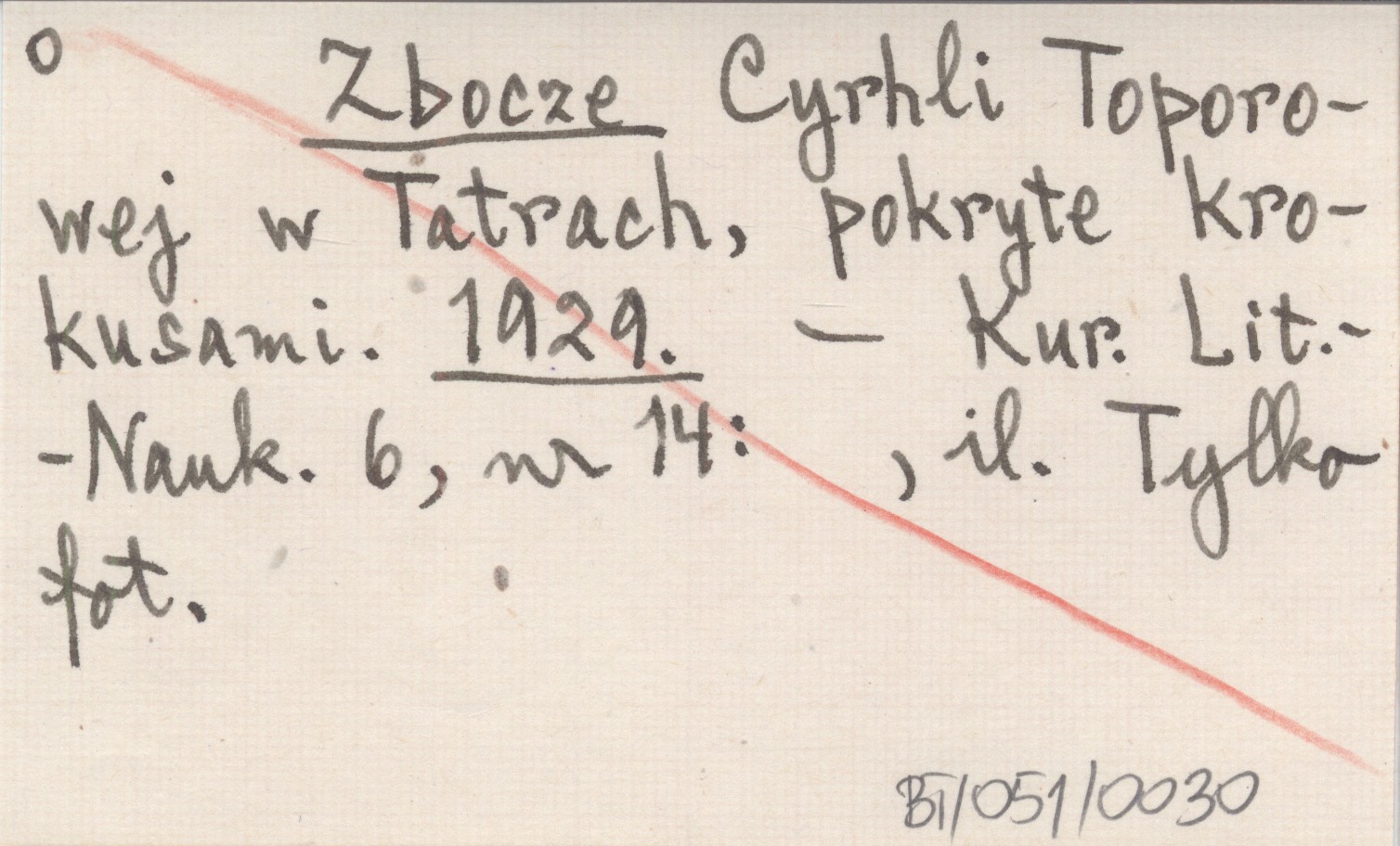 Zbocze Cyrhli Toporowej w Tatrach, pokryte krokusami. 1929