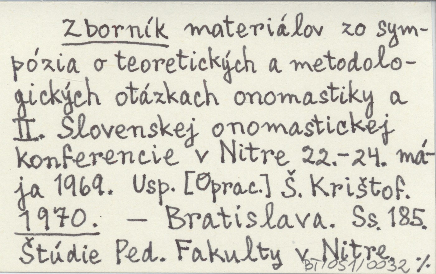 materiálov zo sympózia o teoretickęch a metodologickęch otázkach onomastiky a II. Slovenskej onomastickej konferencie v Nitre 22.-24. mája 1969. Usp. [Oprac.] ©. Kričtof.