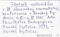 Zborník materiálov z III. slovenskej onomastickej konferencie v Banskej Bystrici 4.XI.-6.XI.1970. 1972