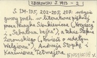 Język Polski, 1, nr 5: 129-138 ; nr 6: 161-171 ; nr 7: 199-209. S. 134-135, 202-205, 207: użycie gwary podhalańskiej w literaturze pięknej przez Henryka Sienkiewicza ("Krzyżacy" i "Sabałowa bajka"), a także Stefana Żeromskiego ("Powieść o udałym Walgierzu"), Andrzeja Stopkę i Kazimierza Tetmajera. REC: BUDZYK K. *1937