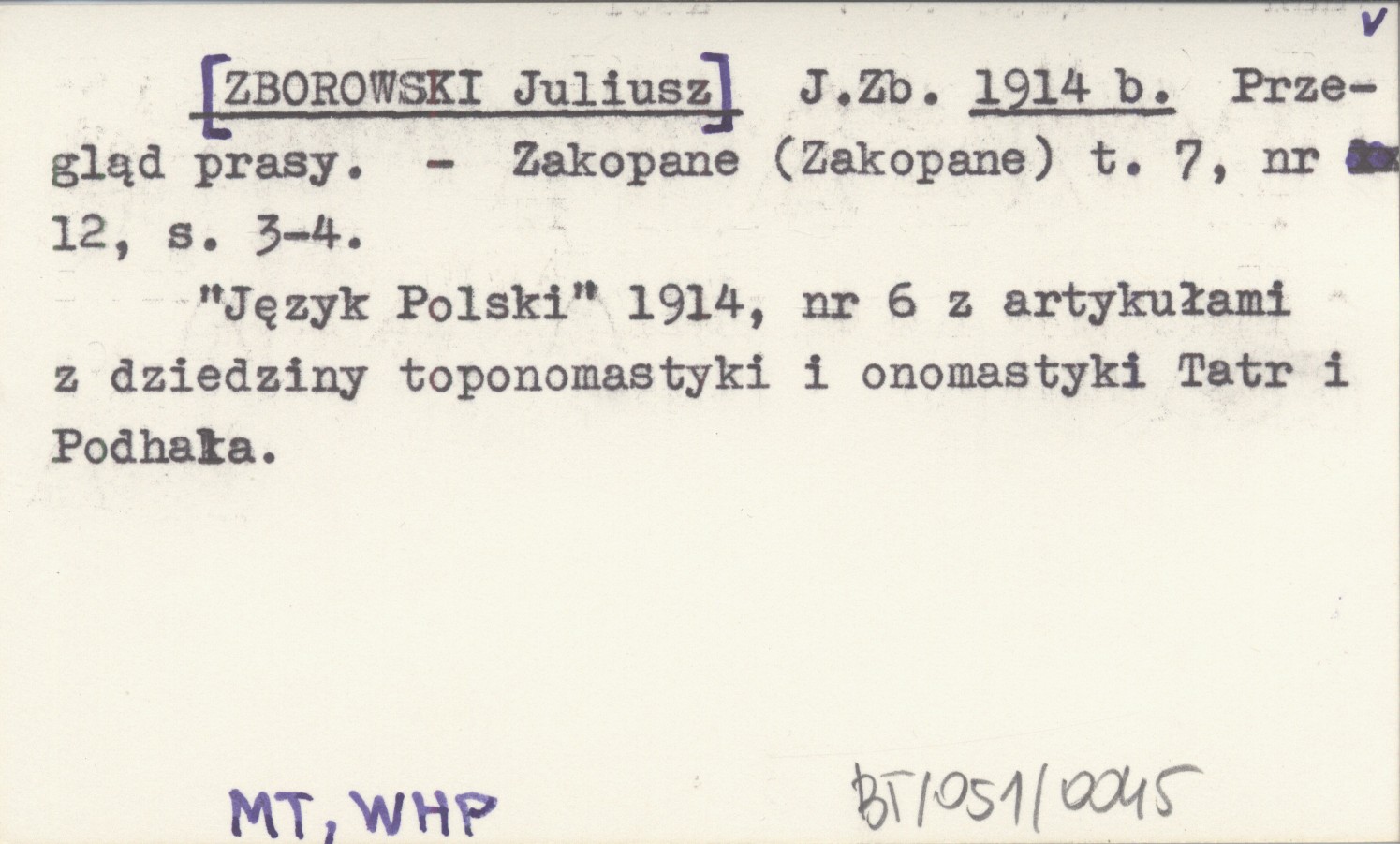 Zakopane (Zakopane) , T. 7, nr 12: 3-4. "Język Polski" 1914, nr 6 z artykułami z dziedziny toponomastyki i onomastyki Tatr i Podhala.