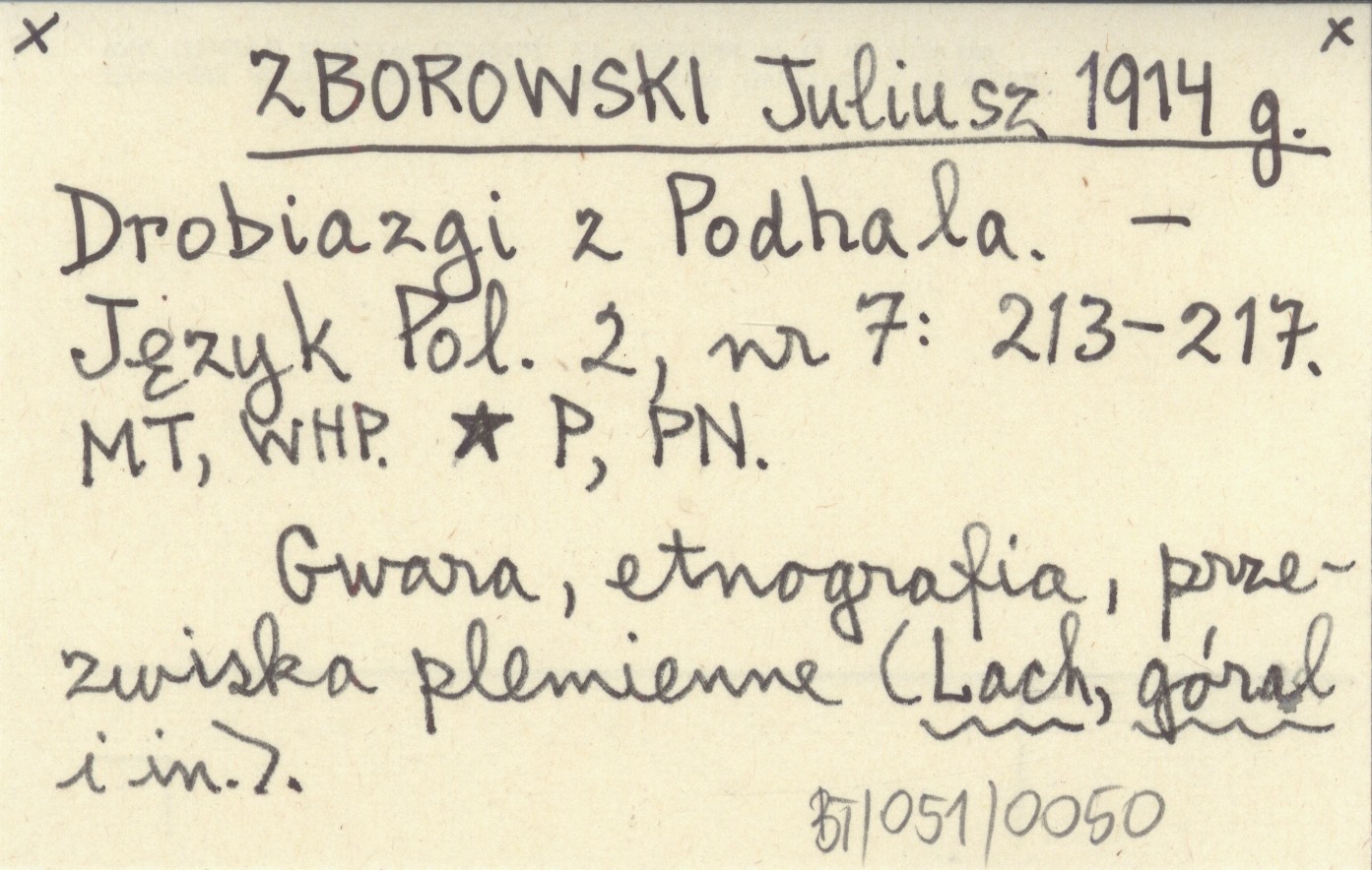 Język Polski, 2, nr 7: 213-217. Gwara, etnografia, przezwiska plemienne (Lach, góral i in.).