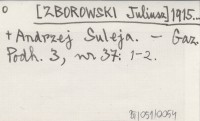 [ZBOROWSKI Juliusz] 1915... + Andrzej Suleja.