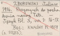 ZBOROWSKI Juliusz 1916 Przyczynek do pochodzenia nazwy Tatr.