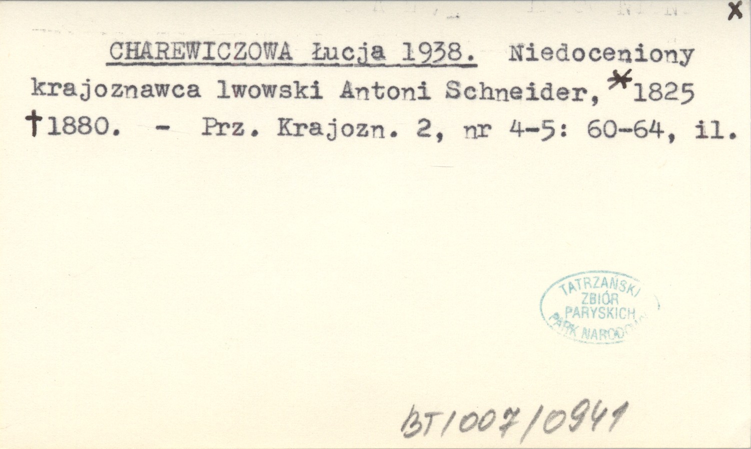 CHAREWICZOWA Łucja 1938 Niedoceniony krajoznawca lwowski Antoni Schneider, 1825-1880.