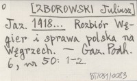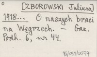 [ZBOROWSKI Juliusz] 1918... O naszych braci na Węgrzech.