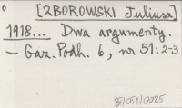 [ZBOROWSKI Juliusz] 1918... Dwa argumenty.