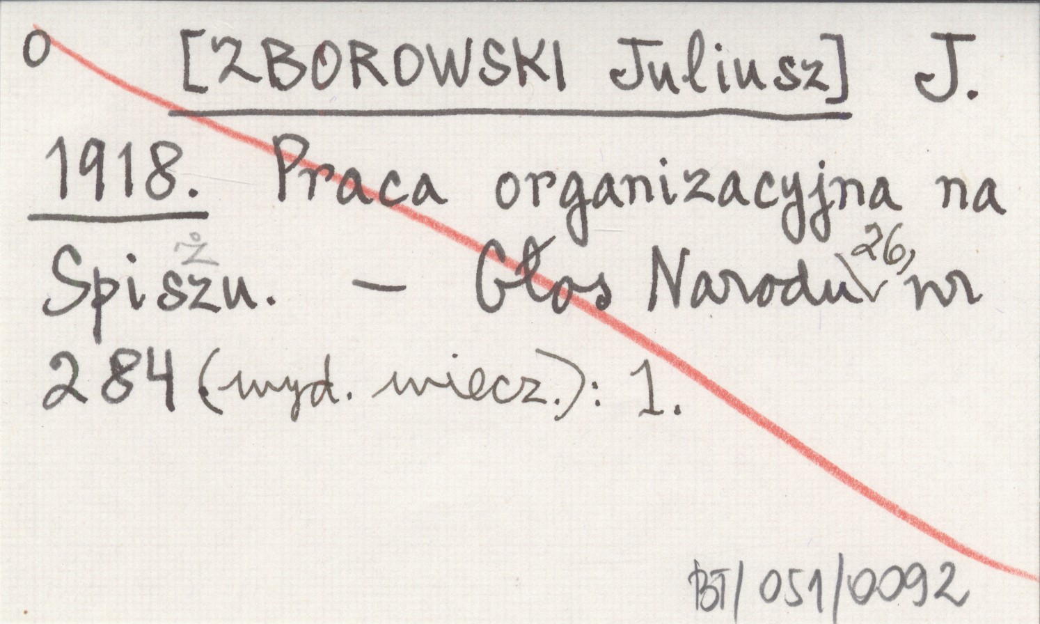 J. [ZBOROWSKI Juliusz] 1918 Praca organizacyjna na Spiszu.