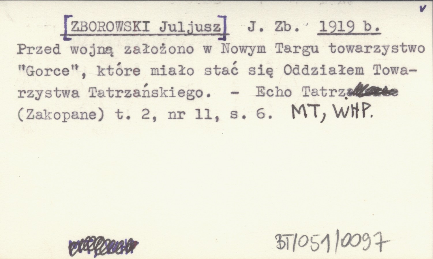 J. Zb. [ZBOROWSKI Juljusz] 1919 b Przed wojną założono w Nowym Targu towarzystwo "Gorce", które miało stać się Oddziałem Towarzystwa Tatrzańskiego.