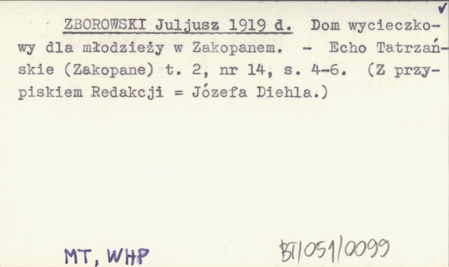 ZBOROWSKI Juljusz 1919 d Dom wycieczkowy dla młodzieży w Zakopanem.