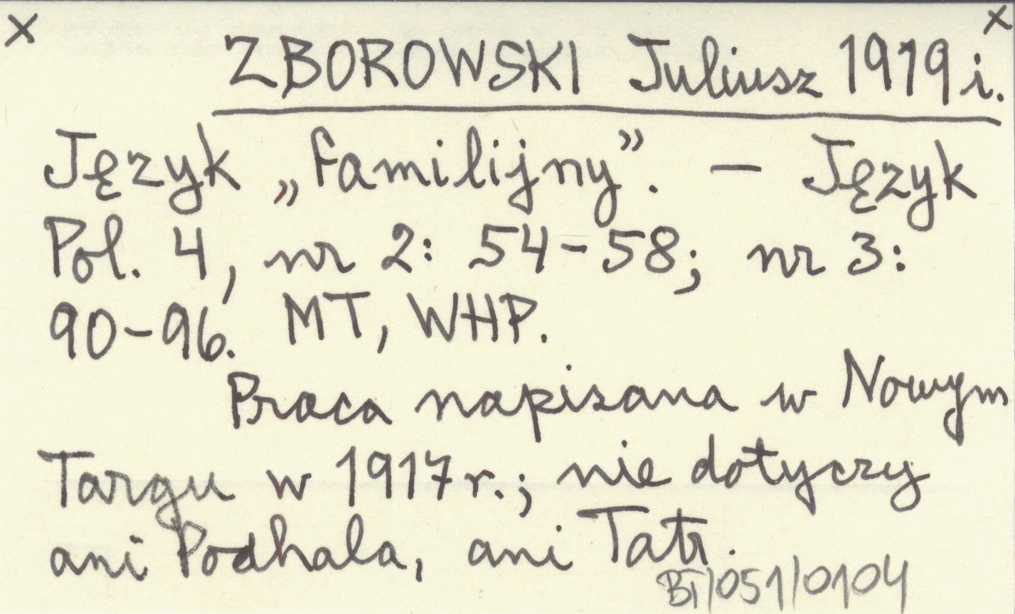 Język Polski, 4, nr 2: 54-58 ; nr 3: 90-96. Praca napisana w Nowym Targu w 1917 r. ; nie dotyczy ani Podhala, ani Tatr.