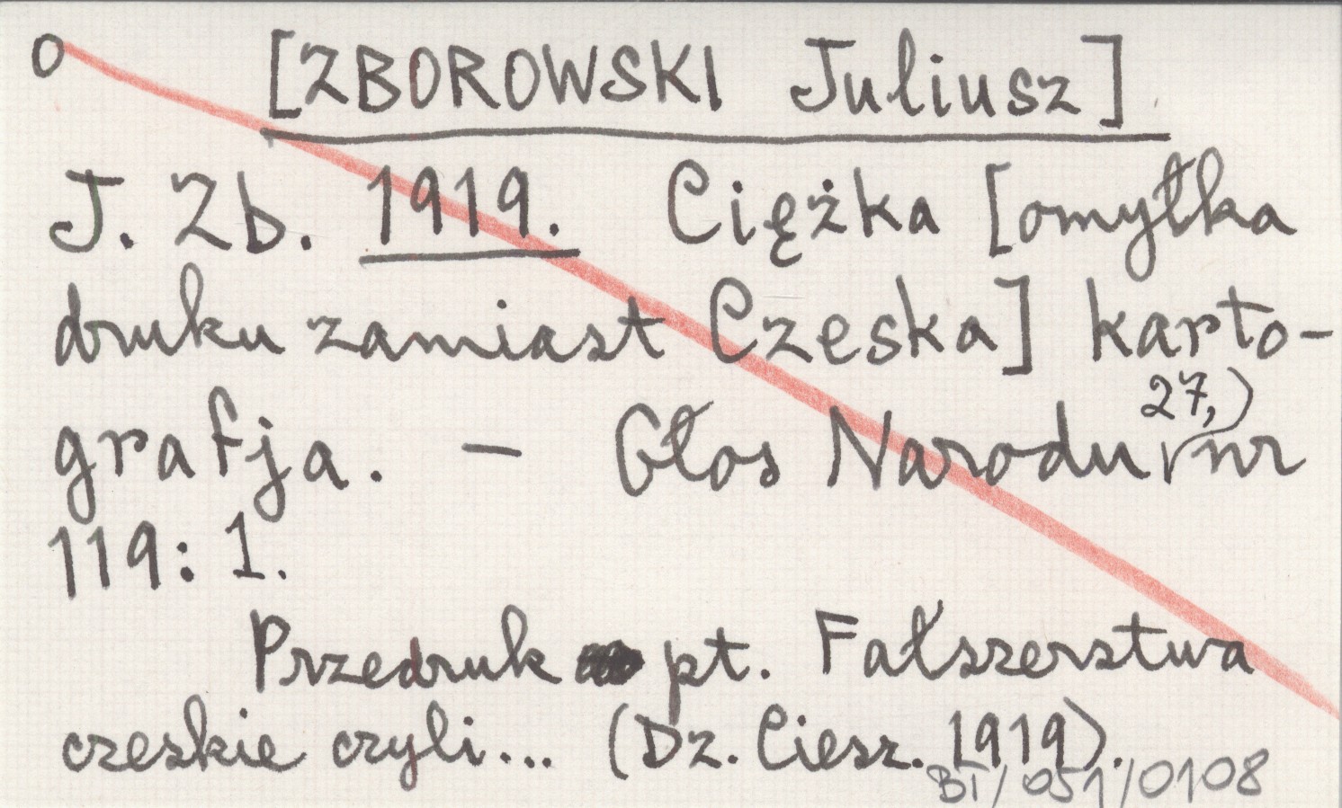 J. Zb. [ZBOROWSKI Juliusz] 1919 Ciężka [omyłka druku zamiast Czeska] kartografja.