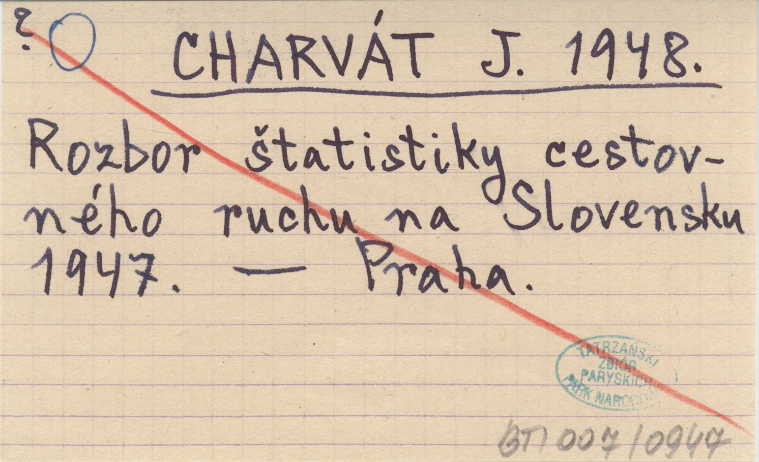 CHARVÁT J. 1948 Rozbor štatistiky cestovného ruchu na Slovensku 1947.