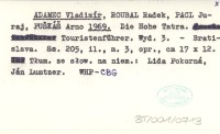 ADAMEC Vladimír ROUBAL, Radek. ; PACL, Juraj. ; PUŠKÁŠ, Arno. ; 1970 A guide to the High Tatras.