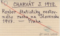 CHARVÁT J. 1948 Rozbor ątatistiky cestovného ruchu na Slovensku 1947.