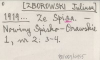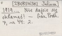 [ZBOROWSKI Juliusz] 1919... Ze Spisa.