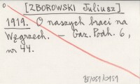 [ZBOROWSKI Juliusz] 1919 O naszych braci na Węgrzech.