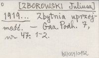[ZBOROWSKI Juliusz] 1919... Zbytnia uprzejmość.