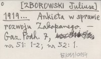 [ZBOROWSKI Juliusz] 1919... Ankieta w sprawie rozwoju Zakopanego.