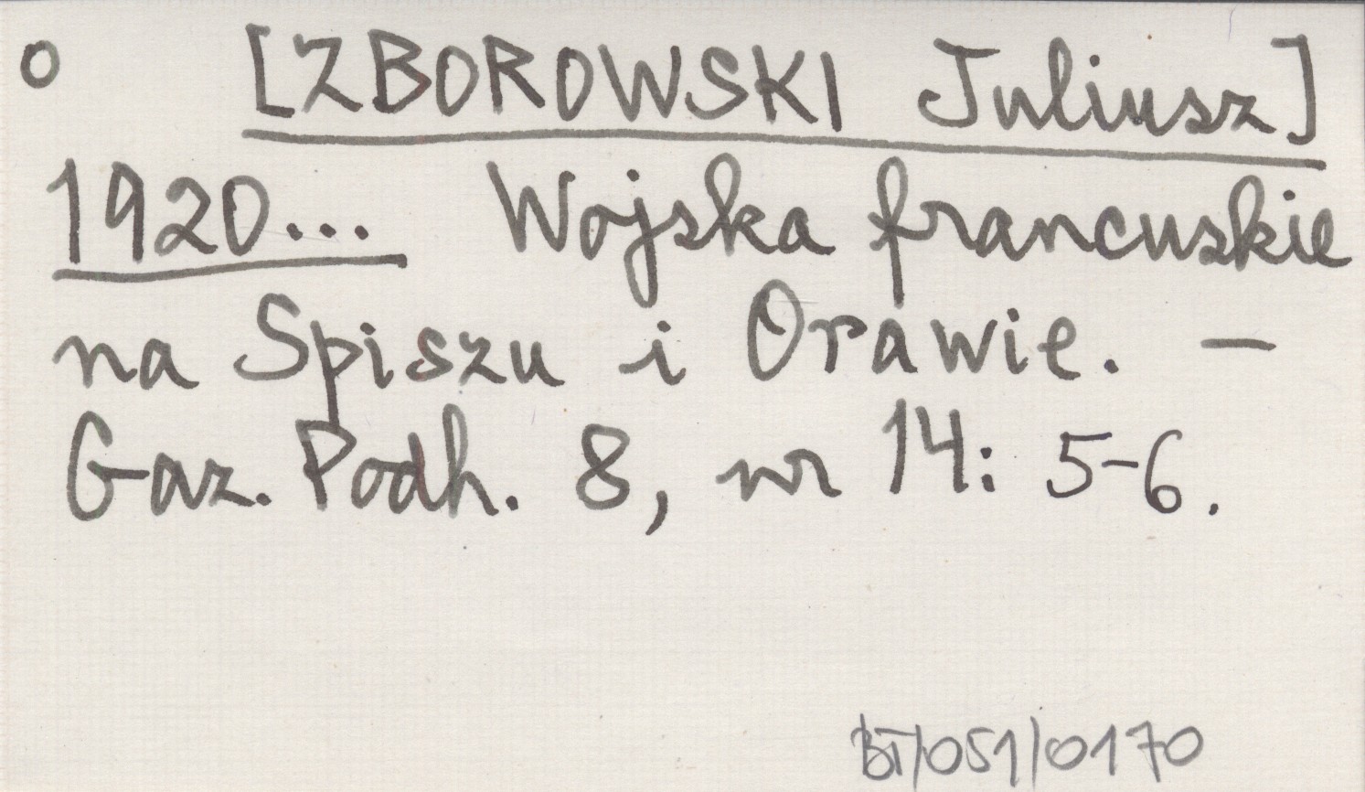 [ZBOROWSKI Juliusz] 1920... Wojska francuskie na Spiszu i Orawie.