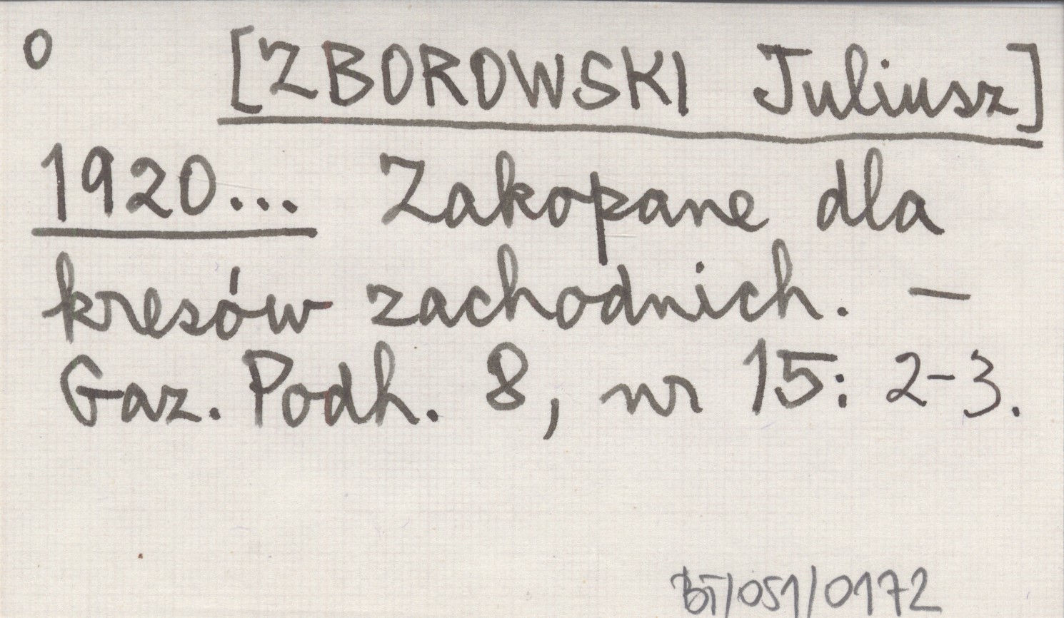 [ZBOROWSKI Juliusz] 1920... Zakopane dla kresów zachodnich.