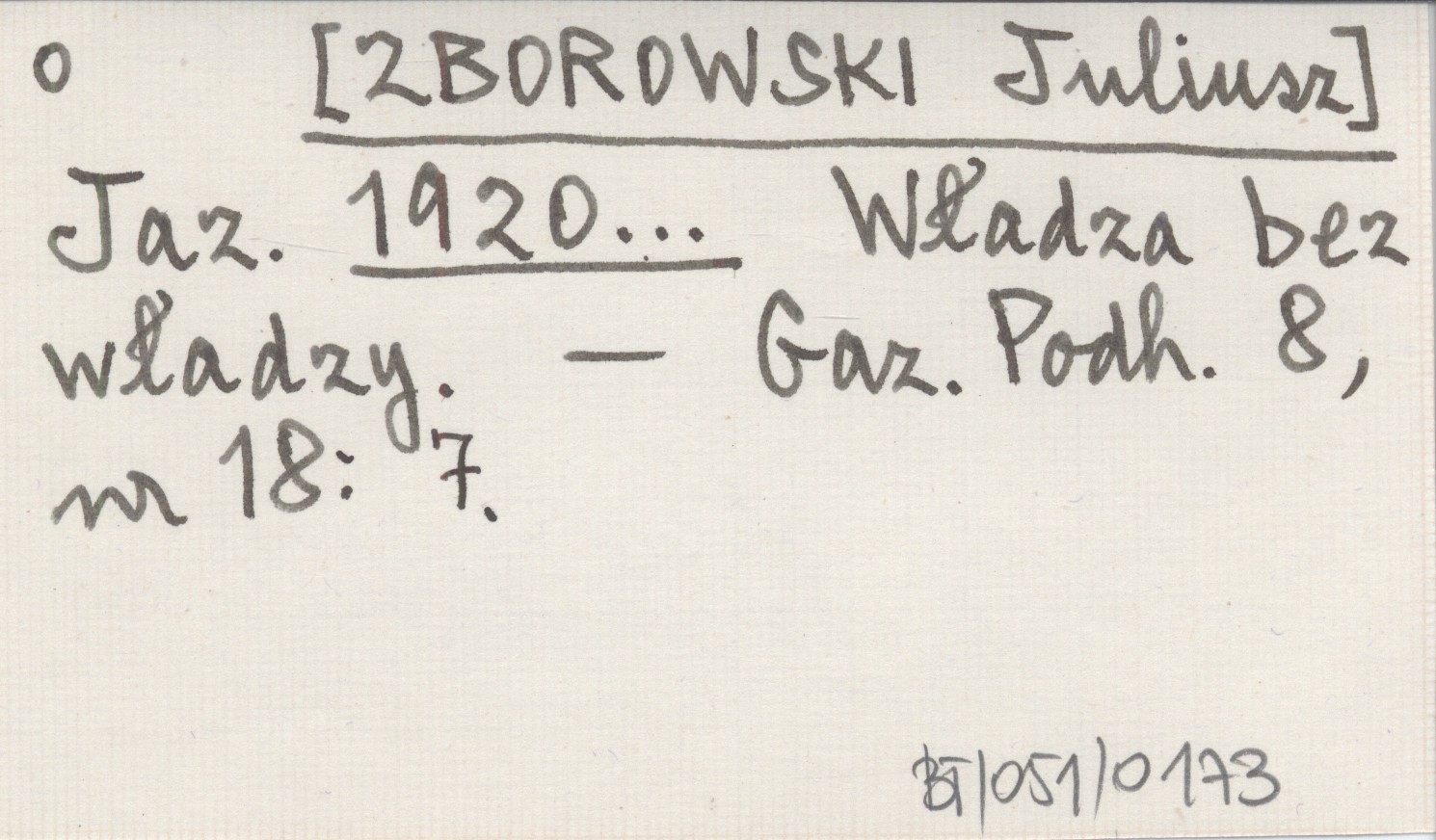 Jaz. [ZBOROWSKI Juliusz] 1920... Władza bez władzy.