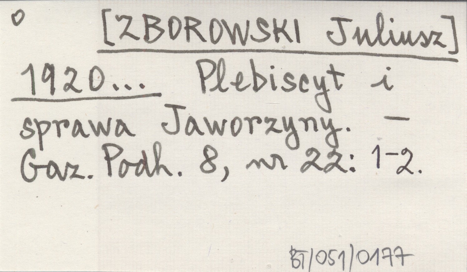 [ZBOROWSKI Juliusz] 1920... Plebiscyt i sprawa Jaworzyny.