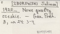 [ZBOROWSKI Juliusz] 1920... Nowe gwałty czeskie.