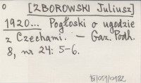 [ZBOROWSKI Juliusz] 1920... Pogłoski o ugodzie z Czechami.