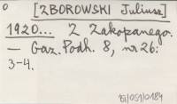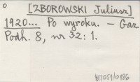 [ZBOROWSKI Juliusz] 1920... Po wyroku.