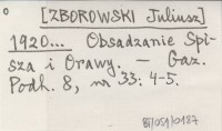 [ZBOROWSKI Juliusz] 1920... Obsadzanie Spisza i Orawy.