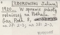 [ZBOROWSKI Juliusz] 1920... W sprawie szkoły rolniczej na Podhalu.