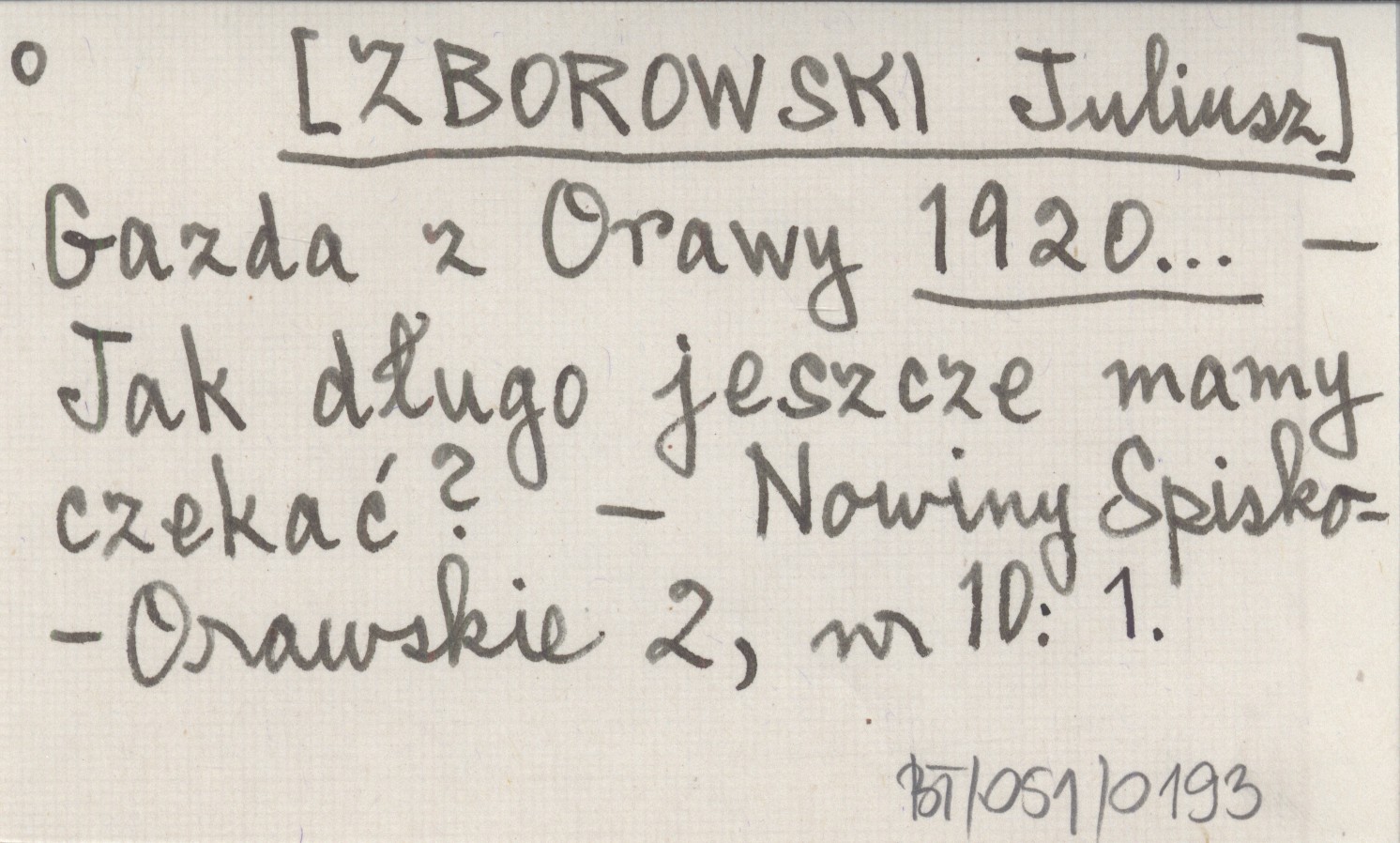 Gazda z Orawy [ZBOROWSKI Juliusz] 1920... Jak długo jeszcze mamy czekać?