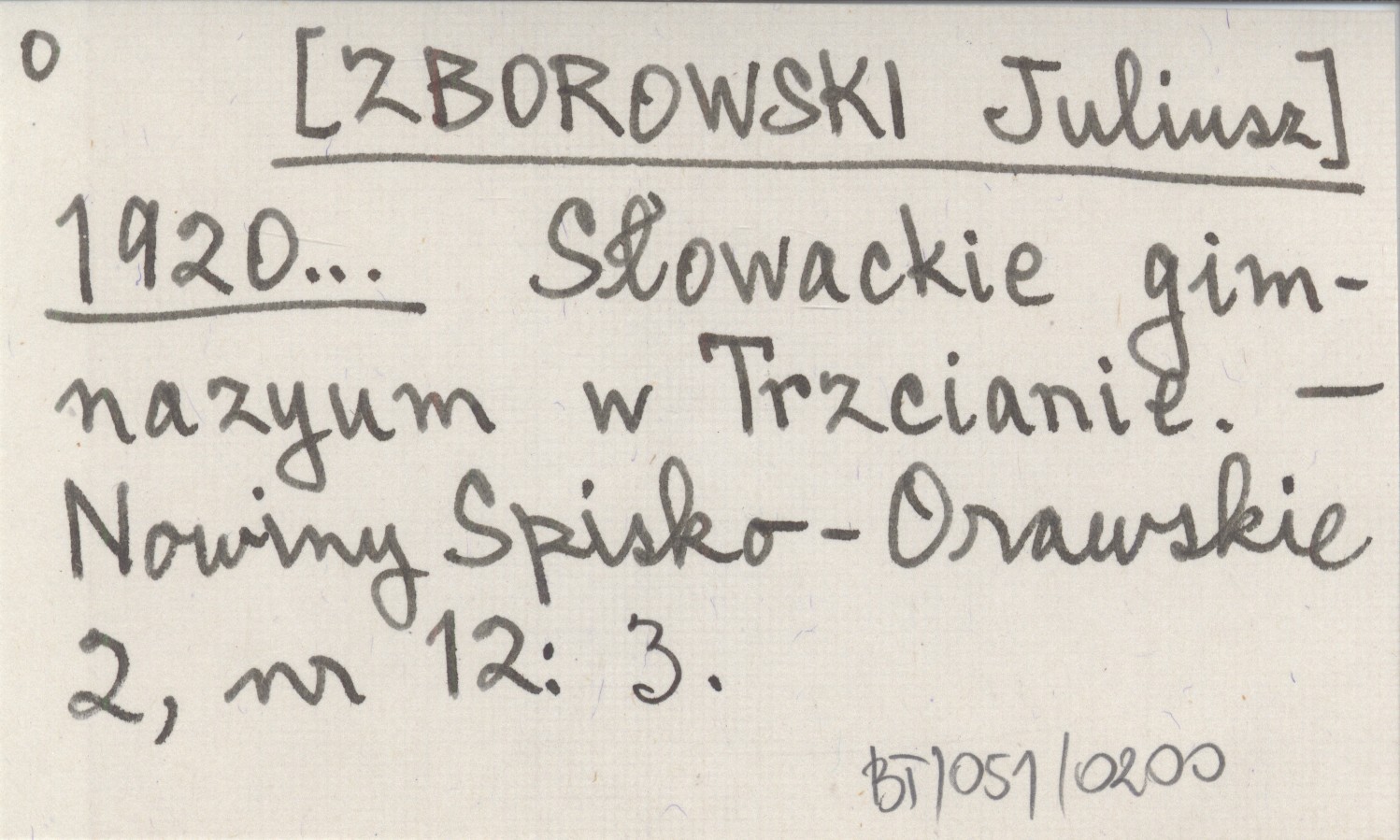[ZBOROWSKI Juliusz] 1920... Słowackie gimnazyum w Trzcianie.