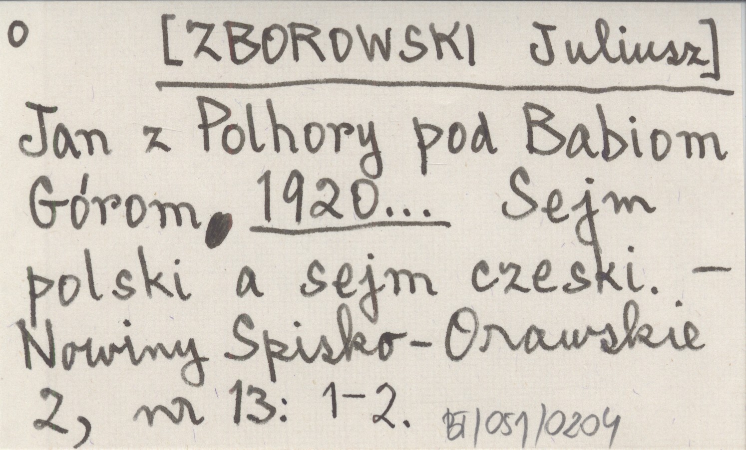 Jan z Polhory pod Babiom Górom [ZBOROWSKI Juliusz] 1920... Sejm polski a sejm czeski.