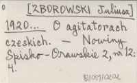[ZBOROWSKI Juliusz] 1920... O agitatorach czeskich.