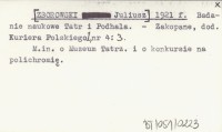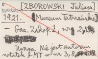 [ZBOROWSKI Juliusz] 1921 Z Muzeum Tatrzańskiego.
