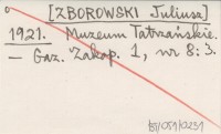 [ZBOROWSKI Juliusz] 1921 [Notatka o Muzeum Tatrzańskim.]